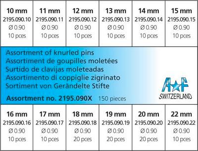 Set of 150 assorted pieces knurled pins diameter .90mm