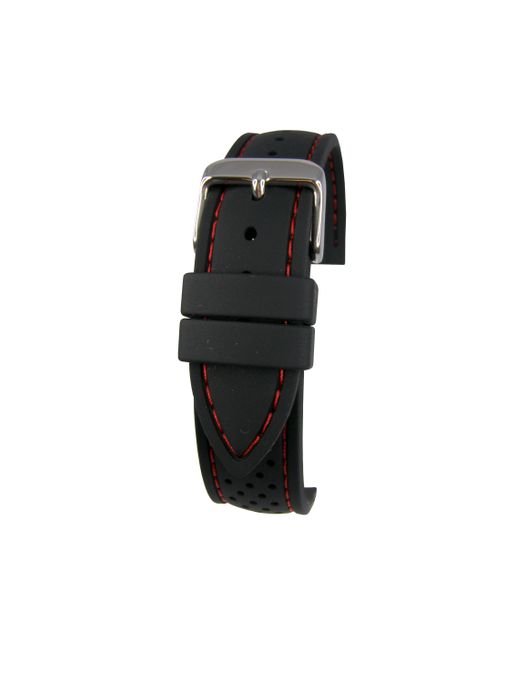 18MM BLACK WITH RED STITCH SILICONE WATCH STRAP
