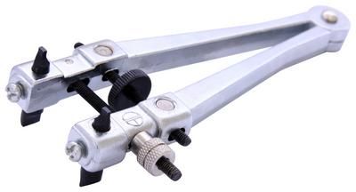 Universal watch case opener with two double pins for removing various types of screw-on case backs. Accurate distance adjustment of the jaws by means of a centre screw plus a locking screw. A fine quality tool.